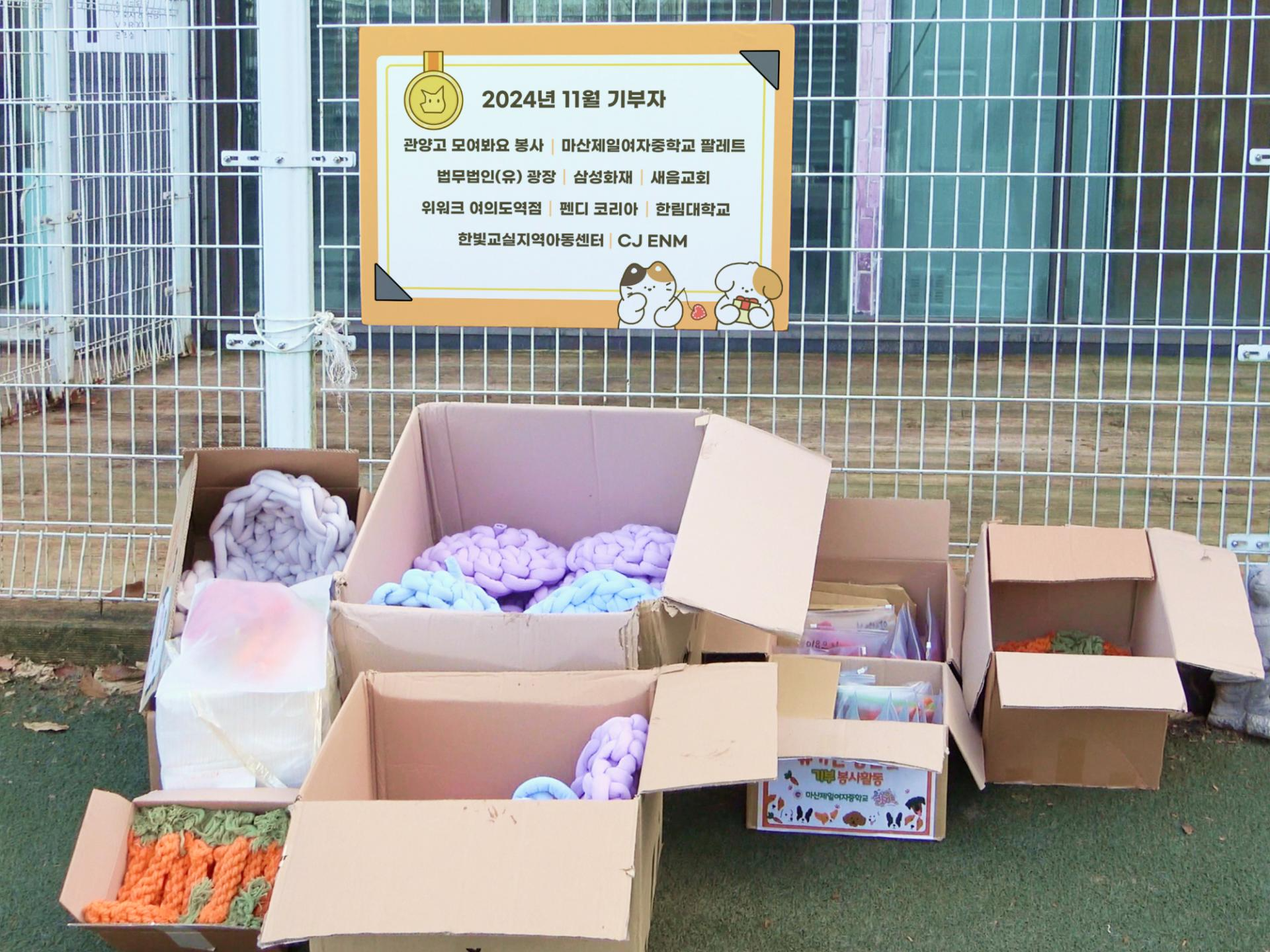 2024월 11월에 유기동물을 위해 전달된 기부물품 현황